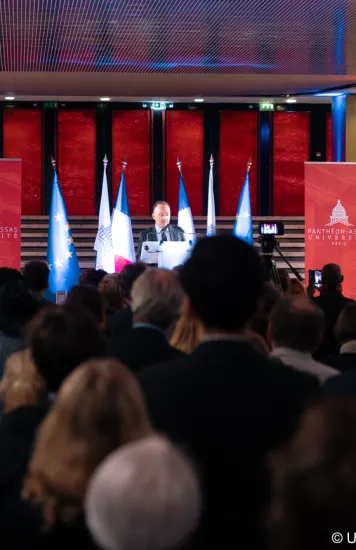 La traditionnelle cérémonie de rentrée s'est déroulée le jeudi 12 septembre au centre Assas, l'occasion pour le président de l’université Stéphane BRACONNIER de souhaiter la bienvenue aux nouveaux personnels et de mettre à l’honneur les jeunes retraités. Le président a également fait le bilan de l'année écoulée et a présenté la feuille de route de l’Université Paris-Panthéon-Assas pour l’année 2024-2025.